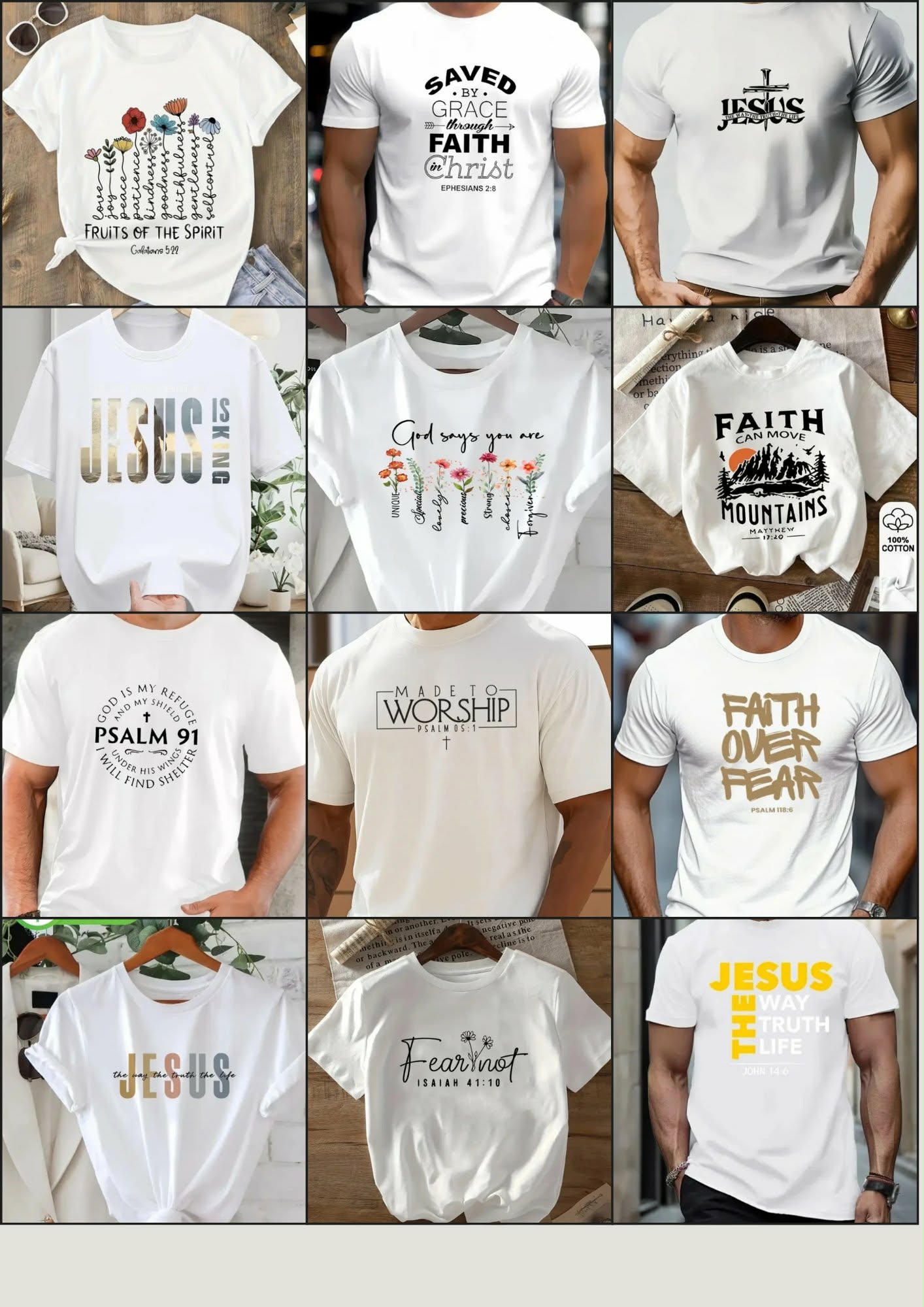Ces t-shirts ont été créés avec amour pour transmettre des messages de foi, de paix et d'espérance.